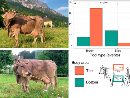 Tras practicar varios ensayos aleatorios en la vaca, descubrieron que el bovino cambiaba del cepillo al extremo del palo cuando se dirigía a las zonas más blandas de la parte inferior del cuerpo. “Este despliegue adaptativo de las características de las herramientas revela un uso multipropósito de herramientas no reportado previamente en mamíferos no primates”, aseguran los investigadores.