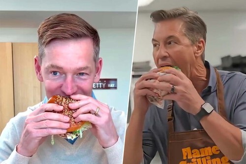 De esta manera, Burger King ha recogido el guante y ha puesto a Tom Curtis, el mandamás de la cadena en Estados Unidos y Canadá, a probar en directo y para compartirlo en redes sociales el legendario Whopper, el buque insignia de la cadena, y el resultado –aunque obviamente ensayado– parece bastante más creíble que el mordisco de Kempczinski, no solo por no llamar producto a la hamburguesa, sino también por la cara que ha puesto al saborearla.