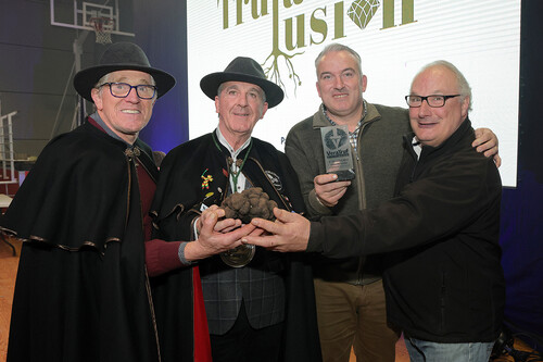 Más rivalidad hubo entre las trufas que competían en la categoría de mejor aroma, Ganó la presentada por Viveros Tuber, de Soria y, tras una intensa pugna, fue José Francisco Nasarre, de quesos Sierra de Guara, habitual en estas pujas, quien se la llevó a su quesería en Las Almunias de Rodellar, donde se integrará en alguno de sus quesos trufados.