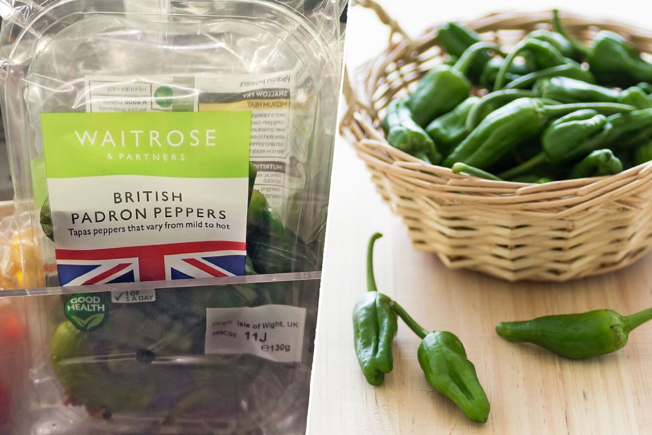 Se anuncian como Padron peppers y, efectivamente, parecen a simple vista pimientos de Padrón, pero ninguno pica y no han visto suelo gallego ni de casualidad. Son los pimientos que triunfan en Reino Unido, convertidos en un producto de éxito hace años gracias a su éxito en pubs, tapas bar y nuevos restaurantes de moda en Londres. Hoy en día se pueden comprar en cualquier supermercado.