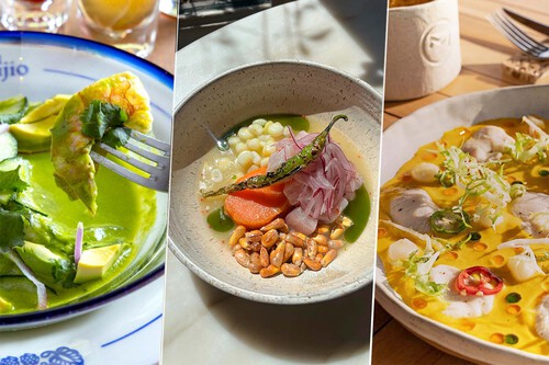 Un buen ejemplo es el que hemos colocado arriba, como es el de Manifesto 13, que lleva dorada curada en sal, azúcar y pimienta molle y luego aliñan con leche de tigre de lulo, un cítrico amazónico, y lo combinan con mango verde, rábano negro y unas gotas de aceite de ají amarillo, tal y como explica la chef Danitza Alpaca, fusionando raíces peruanas e italianas.