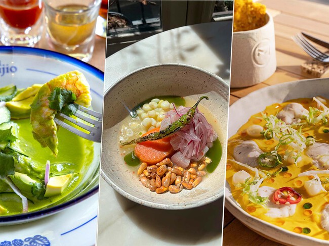 Un buen ejemplo es el que hemos colocado arriba, como es el de Manifesto 13, que lleva dorada curada en sal, azúcar y pimienta molle y luego aliñan con leche de tigre de lulo, un cítrico amazónico, y lo combinan con mango verde, rábano negro y unas gotas de aceite de ají amarillo, tal y como explica la chef Danitza Alpaca, fusionando raíces peruanas e italianas.
