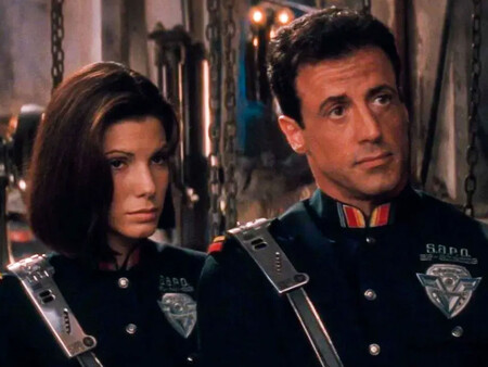 Lo mismo que sucedió con Simon Phoenix, solo que a este, sin querer, lo descongelan antes de tiempo y se convierte en un chungo muy chungo en el Los Ángeles de 2032 (que ya no se llama así, sino San Ángeles, porque ha crecido tanto que Los Ángeles y San Francisco están unidos), pero la policía de la época no usaba los métodos expeditivos de Sly, así que sacan de la nevera también a John Spartan para cazar a Simon. A partir de ahí, mamporros, chulería, persecuciones, tirarle los tejos a Sandra Bullock, lleva coches eléctricos que se conducen solos y apenas suenan… Y unificación culinaria.