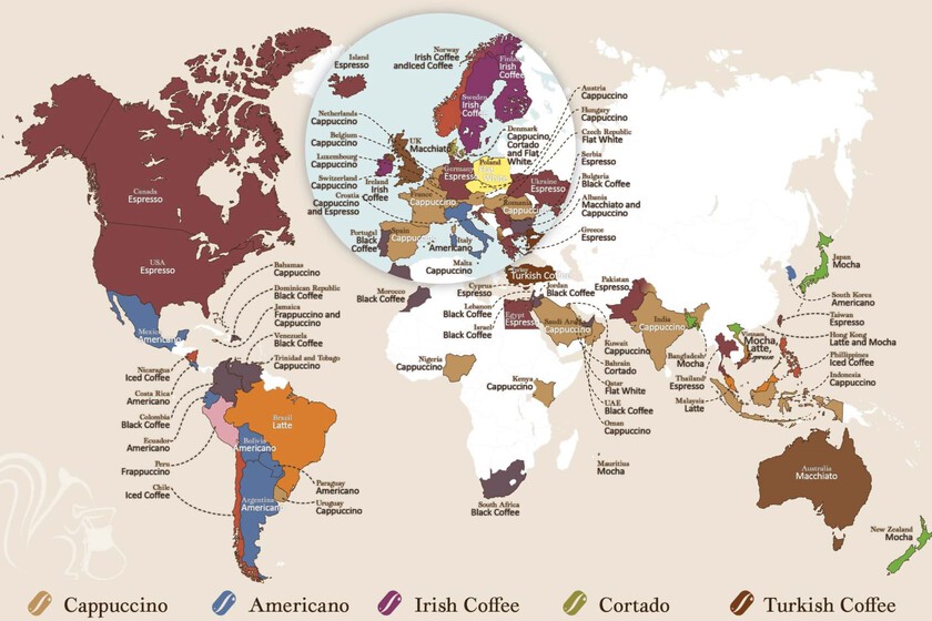Que en países como Estados Unidos y Alemania se decanten por el espresso, o Italia por el americano, refleja que este mapa indica las preferencias de gusto o popularidad, no los datos de consumo; en España puede que nos guste mucho más el capuccino, pero no seremos tantos quienes arrancamos el día con la cremosa receta italiana.