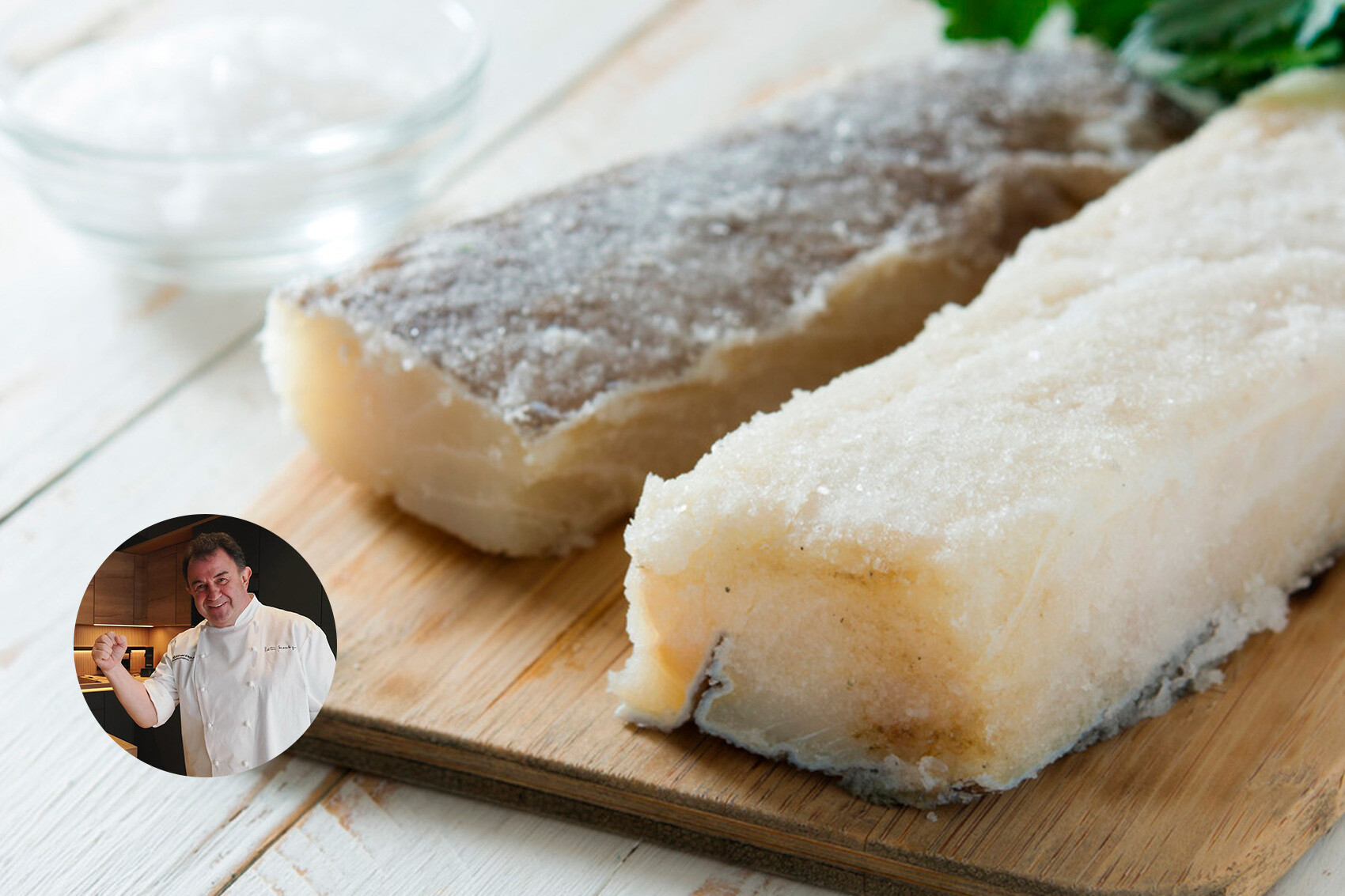 Evidentemente, Martín Berasategui partía de una premisa lógica: contar con un buen bacalao salado. A partir de ahí entramos en terrenos que a veces parecen evidentes y otras no tanto, pero que siempre conviene recordar. Por ejemplo, el chef insiste en que el desalado debe hacerse siempre en la nevera, porque de lo contrario el pescado empieza a estropearse y nos arriesgamos a que se deteriore.