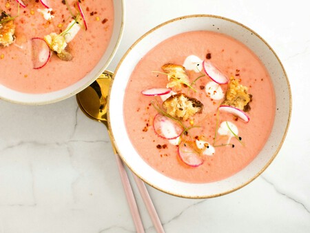 Eso no quiere decir que no puedas tener gazpachos más dulzones de la cuenta, si es que eres de los que quieren ese matiz en ellos –o en el salmorejo– y la solución pasa sencillamente por usar alguna fruta de temporada en el triturado final.