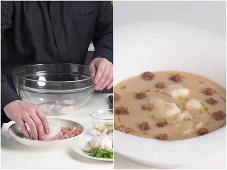 No obstante, aunque la versión que ha hecho Ángel León en su Instagram con Ohgar, uno de sus partners, es la fórmula purista –sobre todo porque prescinde de la naranja–, sí nos quedamos con la copla de una receta de sopa de pescado con un factor diferencial: marinar el pescado.