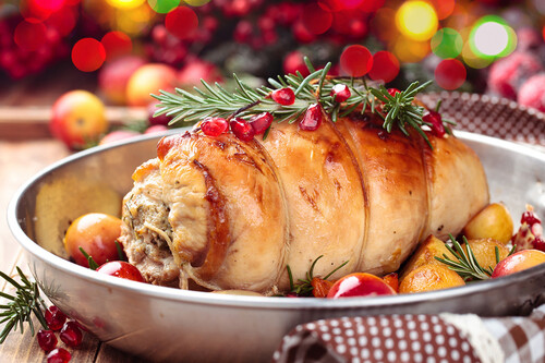 Lo típico, eso sí, vuelve a ser el pavo asado. Otras opciones muy populares son el ganso, solomillo o lomo de cerdo o costillar de ternera, entre otros. No falta el stuffing, salsa gravy, patatas asadas y coles de Bruselas, además de alguna ensalada o más guarniciones de verduras. En definitiva, recuerda mucho al menú estadounidense de Acción de Gracias.