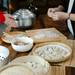 Un grupo de personas haciendo dumplings.