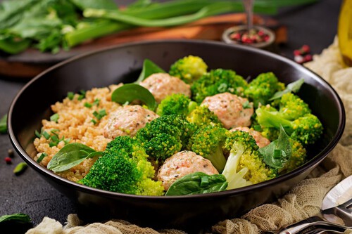 A continuación, abre la nevera y revisa la despensa para crear una combinación de alimentos que incluya una proteína magra, alguna verdura lista —o casi— para usar, carbohidratos de calidad y aderezos a tu gusto (especias, hierbas frescas, salsas, etc). La idea es llevar, aproximadamente, el esquema del plato de Harvard a una misma sartén donde se puede cocinar todo junto en pocos minutos.