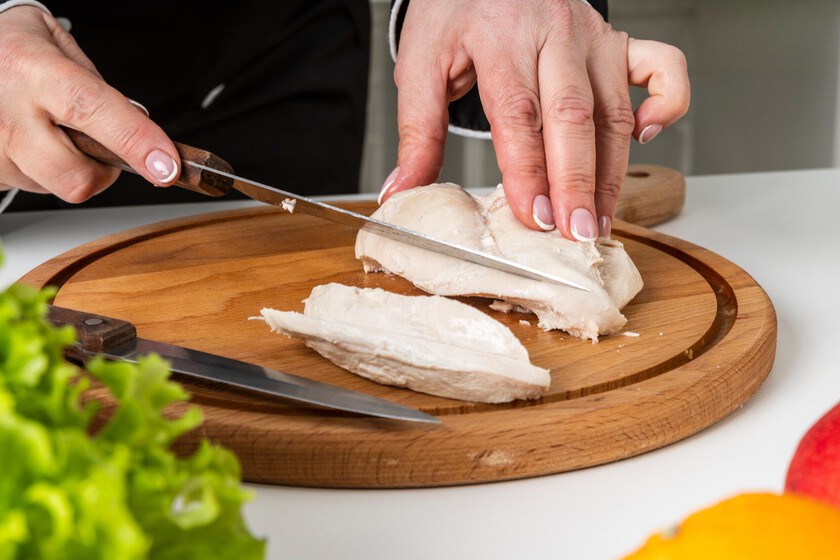 Lo ideal es disponer de un termómetro de cocina digital de lectura instantánea, o uno específico para carnes. No queremos pollo crudo por dentro -jamás comas carne de ave que no esté completamente cocinada, es peligroso-, pero tampoco pasada. Queremos que la pechuga alcance en su interior en la parte más gruesa los 65-68ºC.