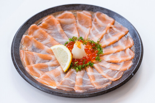 A la hora de servirlo, la idea es la misma: sencillez. Se coloca en abanico o en círculo, muy ordenadito, casi como si fuese un dibujo. Y sí, se puede acompañar con salsa, pero lo justo: un poco de ponzu, salsa de soja o unas gotas de cítrico. No se trata de bañar el pescado, sino de darle un toque para que se note más. A veces también se pone un poco de daikon, cebollino o algo picante muy suave, pero siempre sin taparlo.