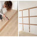 Otra alternativa son los listones de madera, colocados en vertical y separados unos 40 centímetros entre sí. El truco está en rematar con un listón horizontal a media altura, lo que genera un efecto de tarima elegante. Pintados en un color claro, los listones aportan un aire cálido y, en la parte superior, se puede añadir papel pintado para completar un diseño que mezcla modernidad y textura.
