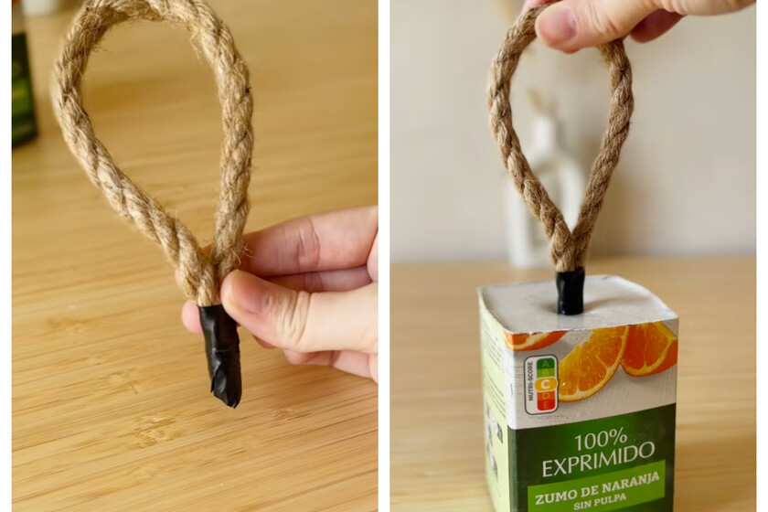 Desde un vídeo viral, una creadora muestra cómo reutilizar el tetrabrik, añadir escayola, cuerda decorativa y un toque de spray barniz para lograr algo más elegante que lo habitual. Es un DIY que mezcla funcionalidad y estética con solo unas herramientas básicas en casa.