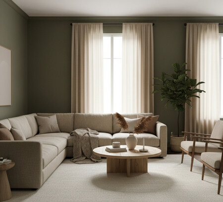 Basta con aplicar estos tonos en las paredes para conseguir una atmósfera más cálida, moderna y acogedora, aprovechando los muebles neutros que ya tienes en casa. El beige de sofás, alfombras o cortinas actúa como base, mientras el verde oliva aporta profundidad y elegancia.
