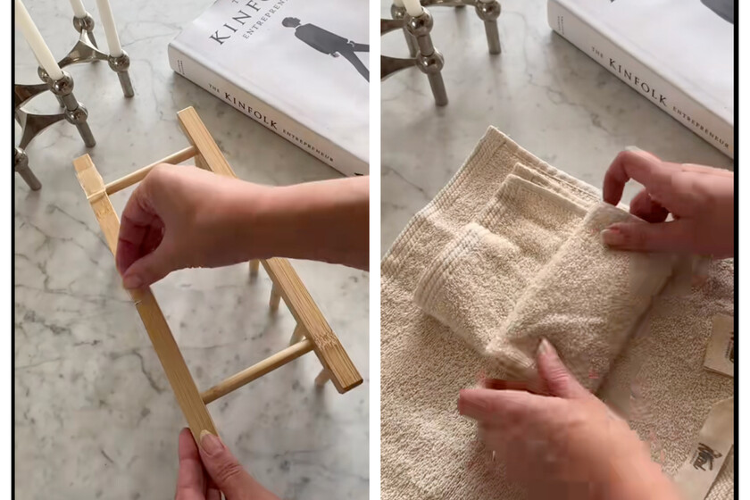 El truco consiste en utilizar el modelo Ostbit de Ikea, una pieza pensada originalmente para secar vajilla, fabricada en bambú natural y con un diseño limpio y funcional. En lugar de apoyarlo sobre la encimera, la creadora de contenido propone fijarlo a la pared, transformándolo en un toallero de líneas sencillas que combina a la perfección con estilos nórdicos, rústicos o minimalistas.