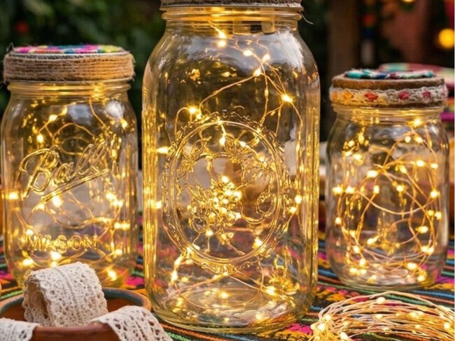 Una guirnalda LED y un bote reciclado bastan para crear una lámpara decorativa que aporta luz cálida y transforma cualquier rincón de casa