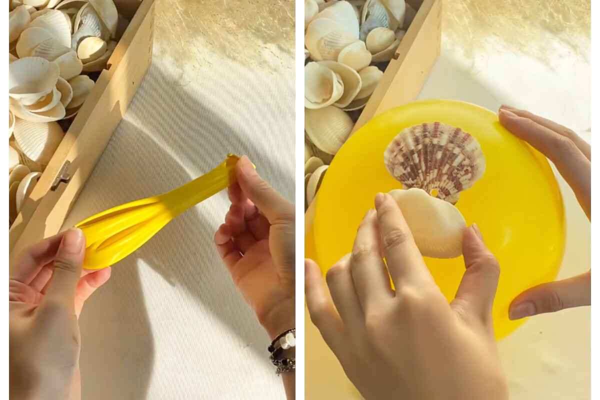 El proceso es tan simple como ingenioso, según muestra la cuenta @changhandmade. Se infla un globo al tamaño deseado, se aplica cola blanca, silicona o pegamento sobre su superficie y se van fijando las conchas una a una. Una vez seco, se pincha el globo y queda la estructura de la lámpara. Un ejercicio de paciencia creativa, pero con un resultado espectacular.