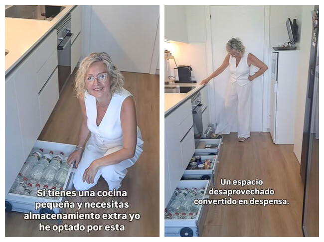 La tiktoker @re_ci_cla ha conmocionado a quienes luchan contra el espacio limitado en la cocina. Su truco (quizás evidente pero sin desvelar a ojos de muchos): comprar kits de cajones de zócalo en Amazon para aprovechar el espacio que normalmente queda olvidado bajo los muebles.