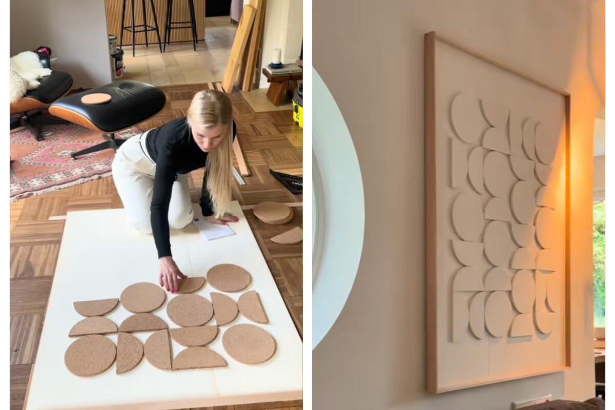 @babettethebuilder What do you think? Art or DIY 🎨✨ Unglaublich, was man aus ein paar Korkuntersetzern & Holz zaubern kann 😍 #diyart #ikeahack #wohnideen #diydecor #homedecor