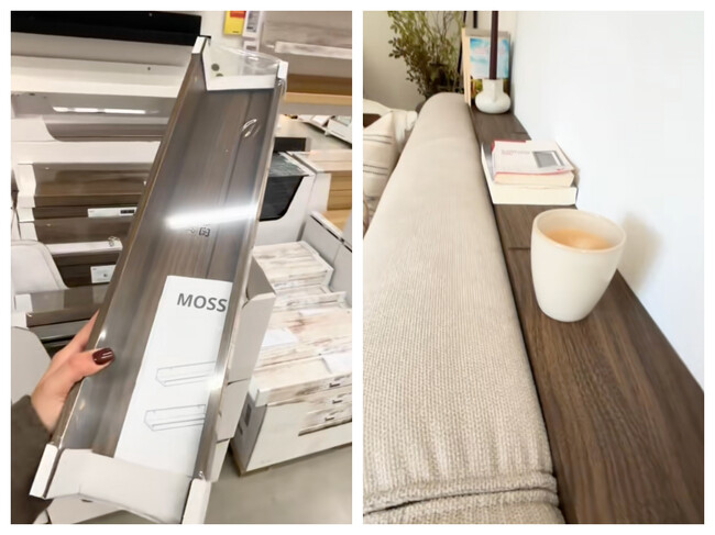 Una de sus mayores ventajas es la facilidad con la que se adapta a distintos rincones de la casa. Muchos usuarios la instalan justo detrás del sofá, aprovechando ese espacio que suele quedar desaprovechado. Ahí, la balda Mosslanda actúa como repisa discreta (de poca anchura y suficiente largada) para dejar una taza, un libro o incluso un bol con aperitivos, sin necesidad de una mesa auxiliar.