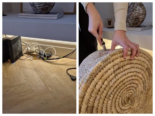 Despuués, hay que colocar dentro los cargadores y alargar los cables por un único orificio, de manera que se logra esconder el caos en apenas segundos. Una idea que convierte un rincón desastroso en un espacio ordenado estético sin esfuerzo.