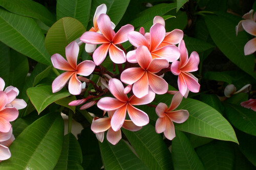 Aunque parezca una planta exigente, la Plumeria se adapta muy bien a climas cálidos como los del litoral mediterráneo y atlántico. Necesita sol abundante, suelos bien drenados y cierta protección frente a las heladas. En estas condiciones, florece con generosidad continua durante la temporada cálida, ofreciendo racimos de flores que van del blanco al rosa intenso.