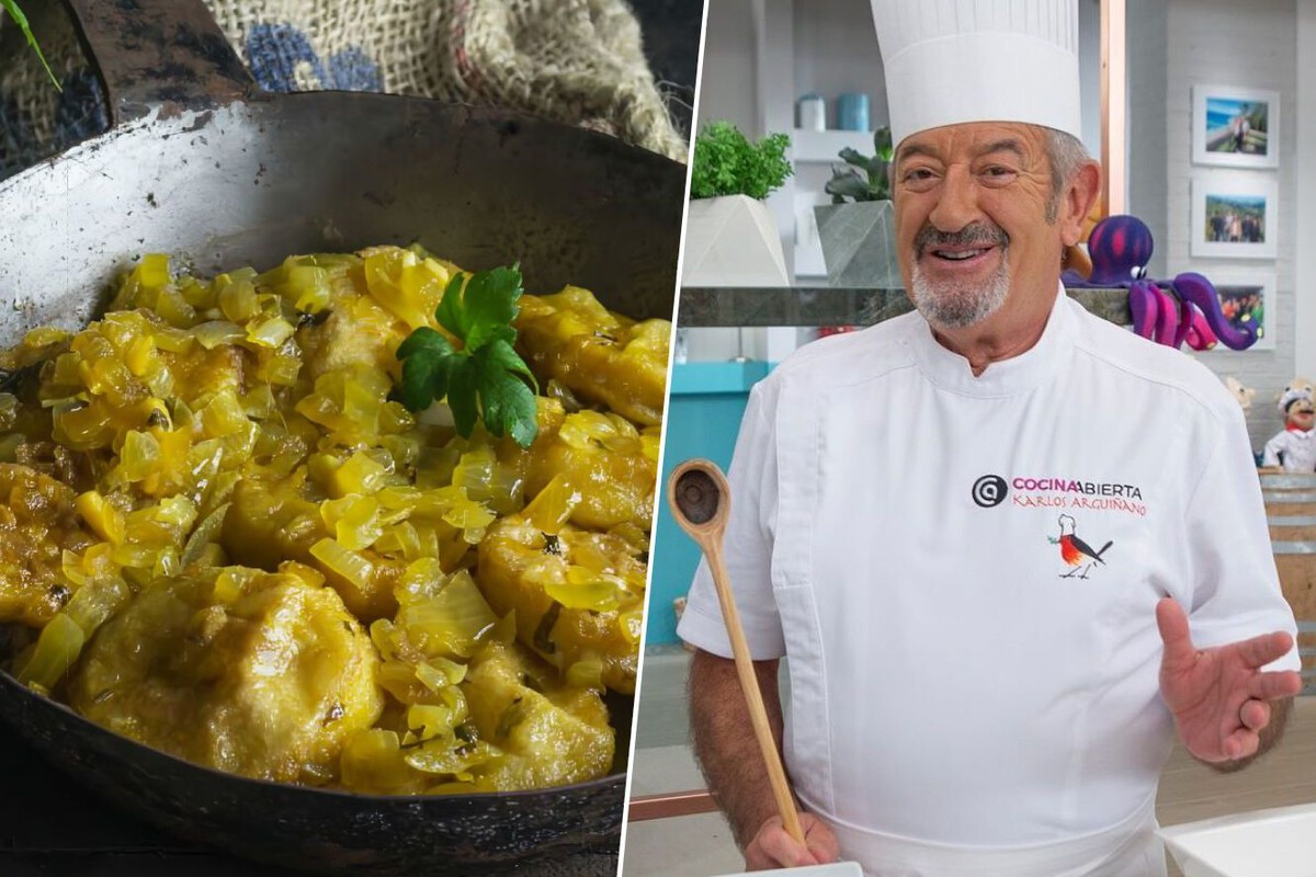 La versión canónica consiste en rebozar, freír y guisar unas patatas cortadas en rodajas gruesas en una salsa espesa de cebolla y ajo, a veces aromatizada con azafrán y/o vino blanco, además de caldo. Pero si queremos darle más chicha al asunto y convertirlas en un plato más completo, el televisivo cocinero nos dejó una idea en su libro Cocina fácil y rico (Planeta cocina, 2022). Con más proteínas y un puntito marinero.