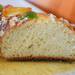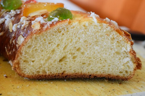 El roscón es una masa de panadería enriquecida, es decir, depende de los fermentos naturales para levar – no es un bizcocho ni un pastel – y su miga está formada por proteínas, grasas y azúcares que le aportan el sabor, la jugosidad y la esponjosidad. El problema es que, en cuanto se enfría al salir del horno, irá perdiendo humedad y aroma; al cortarlo y exponer el interior al aire la cuenta atrás se acelera.