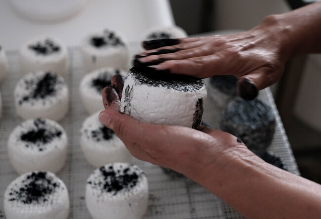 Con calma y a mano, Remedios lleva a cabo un proceso minucioso para crear quesos con nombres tan poéticos como Descansillo, Humildad o Candela. Pero la estrella este año, la que se ha llevado el oro, es el bautizado como Jabaíno, un queso de pasta blanda con leche cruda de cabra madurado con ceniza.