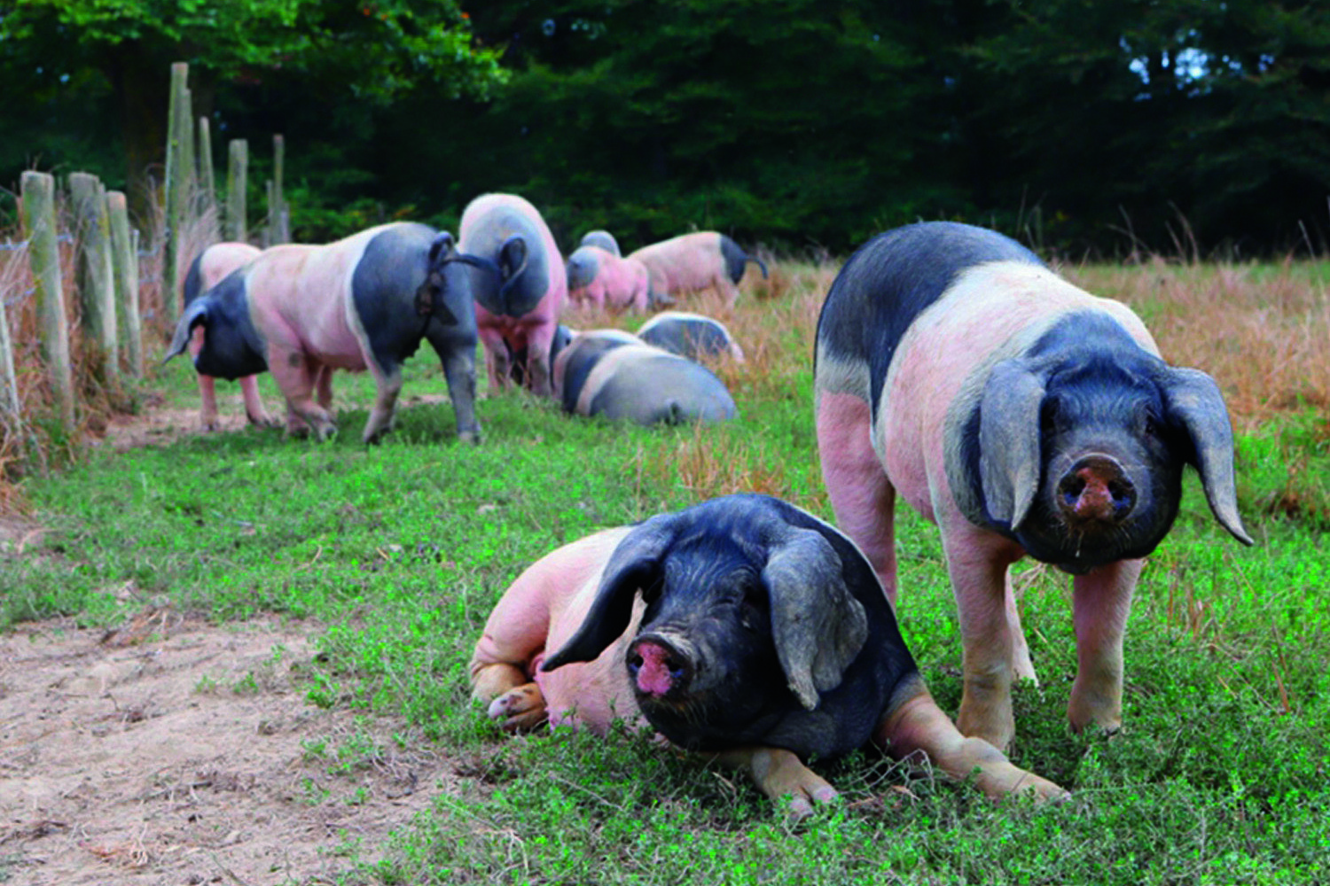 En varias granjas asociadas a Maskarada, el euskal txerri campea y vive en libertad de manera gregaria y dócil