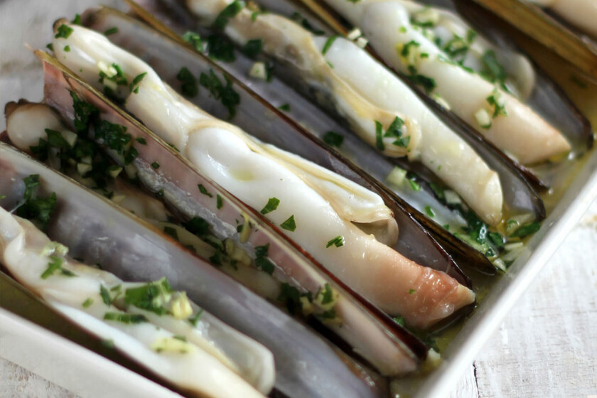 Pero, ¿qué pasa con el muergo? El muergo obedece a la especie Ensis siliqua y, si bien es una carne sutil y similar a la navaja que antes citamos, no es exactamente lo mismo.