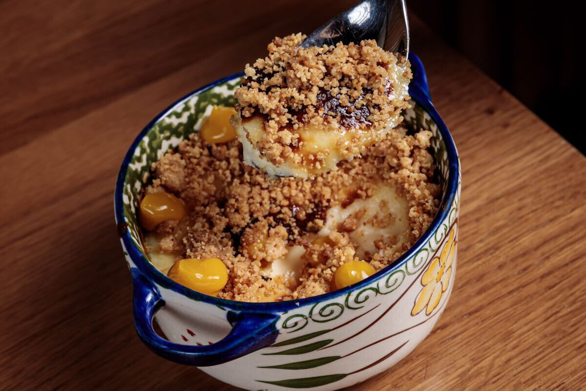 Además de estos trucos, Hernández nos recomienda no prescindir de la típica base de galleta y mantequilla para haga ese efecto crujiente, que considera que marca la diferencia en el bocado final. En Latasia, al presentar la tarta en cazuelas individuales, lo ponen coronando el postre, desmenuzando la masa por encima antes de servir como si fuera un crumble, en el que el sabor de una buena mantequilla de calidad juega también un papel esencial.