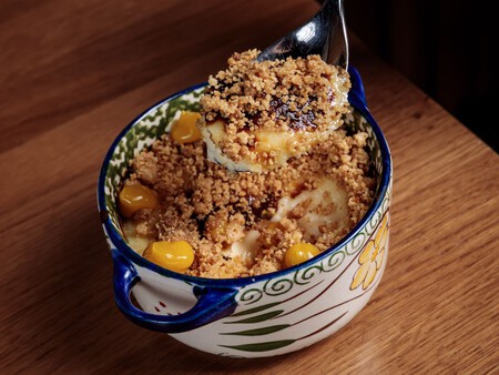 Además de estos trucos, Hernández nos recomienda no prescindir de la típica base de galleta y mantequilla para haga ese efecto crujiente, que considera que marca la diferencia en el bocado final. En Latasia, al presentar la tarta en cazuelas individuales, lo ponen coronando el postre, desmenuzando la masa por encima antes de servir como si fuera un crumble, en el que el sabor de una buena mantequilla de calidad juega también un papel esencial.