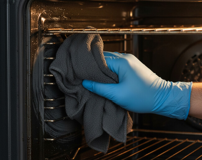 Una vez apagado el horno y cuando esté templado, basta con pasar un paño húmedo o una esponja suave. En muchos casos, este paso ya elimina gran parte de la suciedad sin necesidad de frotar ni usar productos adicionales.