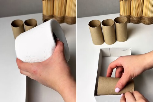 A veces, las mejores soluciones de almacenamiento surgen de los objetos más inesperados. En este caso, un material tan cotidiano como los rollos de cartón de papel higiénico puede convertirse en un aliado perfecto para organizar pequeños utensilios de cocina.