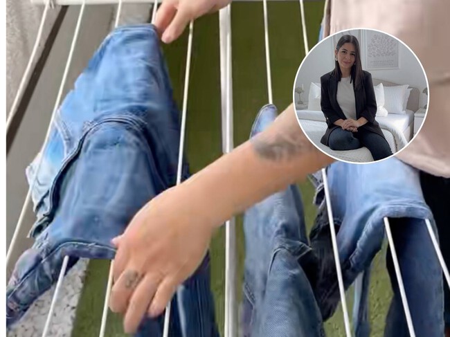 En lugar de colgarlos por la cintura o por los bajos, propone una técnica que distribuye el peso de forma equilibrada y mejora la ventilación del tejido. Según explica en sus redes, el truco consiste en colocar cada pierna del pantalón sobre una varilla distinta del tendedero.