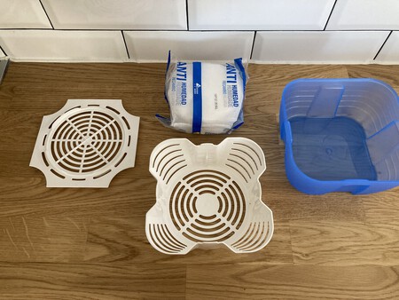 Montarlo resulta sencillo. El kit viene prácticamente listo para usar: basta con retirar la pastilla del envoltorio, colocarla sobre el envase azul y cubrirla con la rejilla superior. La marca recomienda lavarse bien las manos después de manipularlo y situarlo en una zona estable, preferiblemente bajo el lavabo o cerca de la ducha.
