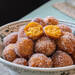 Transcurrido el tiempo de reposo, calentamos abundante aceite en un cacito. Tomamos pequeñas porciones de la masa con una cucharadita y las dejamos caer en el aceite, que habrá de estar a unos 165-170ºC. Las volteamos para que se doren por todos lados antes de retirar, escurrir y pasar a un plato con papel absorbente.
