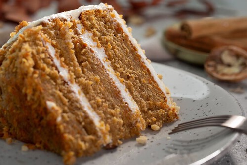 La receta de tarta de zanahoria típica se asemeja a nuestros bizcochos de toda la vida, pues se hace montando los huevos con el azúcar y añadiendo aceite, no mantequilla. Tras los ingredientes secos, se incorpora la zanahoria rallada, que le da estructura, color y humedad, con un sabor característico que se realza con las especias. Pero si trituramos la hortaliza en lugar de rallarla, la miga quedará más suave y tendremos un pastel más jugoso, nada seco.