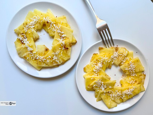 El ingrediente diferencial en este caso es el Tajín. Sin embargo, la versatilidad de la piña permite explorar otros horizontes: se puede sustituir, por ejemplo, por chile en polvo para un toque ahumado, por pimienta rosa recién molida para un aroma floral e incluso por ralladura de lima con una pizca de sal marina para una versión puramente cítrica y marina. Sea cual sea la elección, el plus final de las especias lo hace inesperado y memorable.