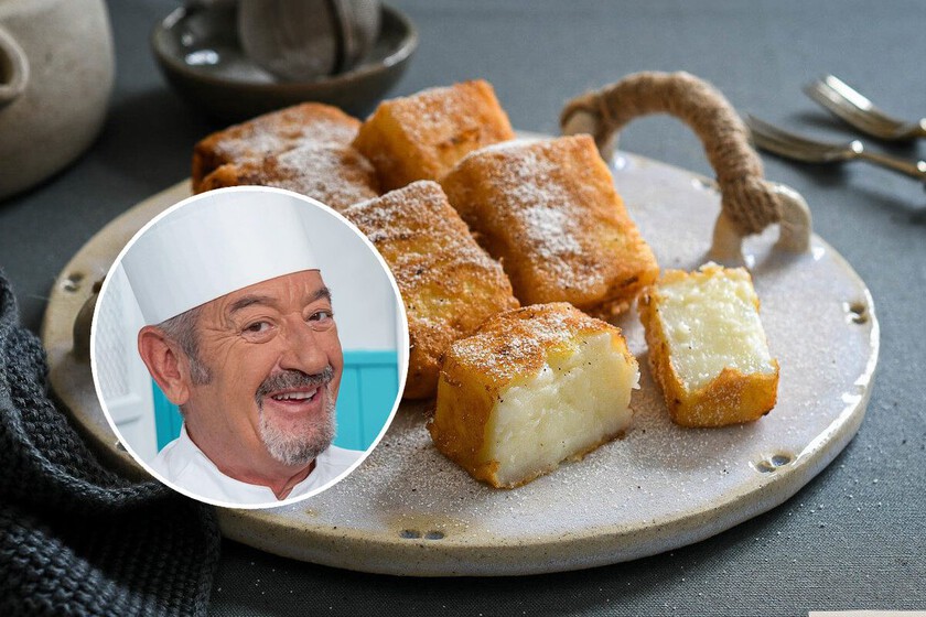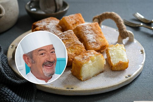 Como postre típicamente tradicional y con variantes muy similares en toda España, la leche frita no podía faltar en el recetario de Karlos Arguiñano. En su amplia bibliografía, de hecho, ha compartido varias versiones de esta delicia, un híbrido entre postre lácteo y dulce de sartén cuya elaboración ha perfeccionado a lo largo de muchos años.