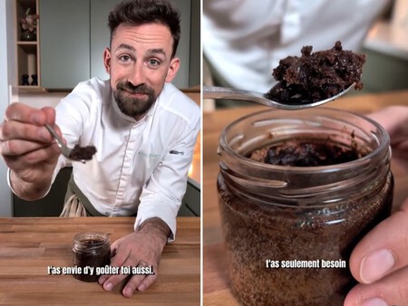 El reclamo es muy tentador: un postre chocolatoso que se hace en solo 15 minutos, sin usar el horno, sin tener que pesar o medir nada, y sin manchar más que el mismo recipiente donde se va a preparar. Es un postre de formato individual que se cocina al baño maría, por lo que no hace falta nada más que una placa de cocina para hacerlo, ni microondas, ni freidora de aire, ni ningún otro aparato especial. Un bote, una cuchara y una olla con tapa.