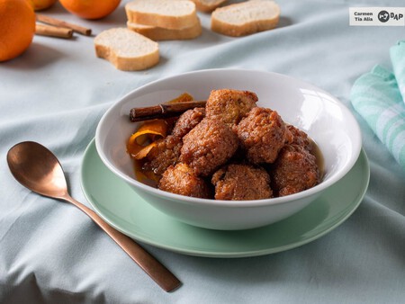 Es una elaboración de lo más simple que consiste en mezclar miga de pan, huevo, azúcar y un toque de azafrán hasta tener una masa que se puede bolear en forma de albondiguillas. Estas se fríen y, para rematar, se terminan cociendo ligeramente en un almíbar suave con un sabor de lo más sugerente, aromatizado con canela, anís y naranja. Todo el sabor jienense reunido en un mismo dulce que queda súper esponjoso y jugoso.