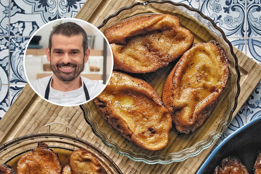 No absolutamente todo, claro; mezclar todas las variantes del remojo de las torrijas en una misma receta podría crear un engendro gastronómico digno de los videos culinarios más virales, y caería como un yunque en el estómago. Pero el cocinero y presentador de Cómetelo propone mezclar los líquidos de las tres versiones más populares: leche, vino blanco y vino dulce. Y además las baña con miel.