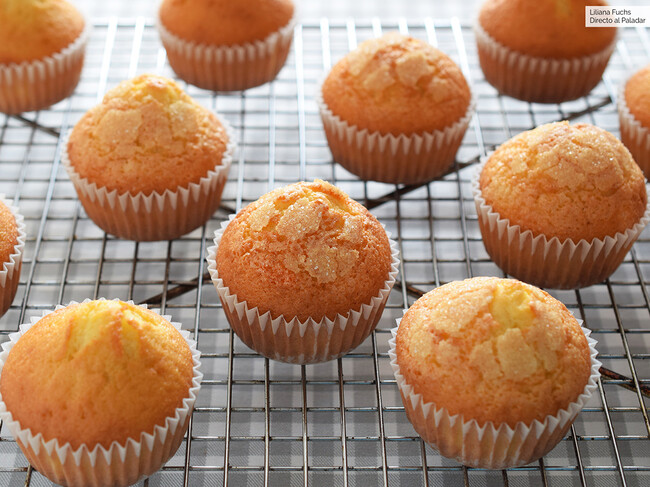 Precalentar el horno al máximo con calor arriba y abajo (unos 250ºC). Repartir las cápsulas de papel en moldes rígidos y llenar con la masa, dejando un dedo antes de llegar al borde. Si se desea, cubrir con azúcar para hacer costra.