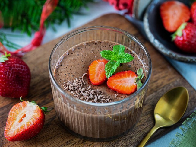 A la hora de servir, espolvorea por encima el resto del chocolate, rallado o picado finamente. Puedes decorar con unos frutos rojos, hojas de menta o un poco de nada semimontada.