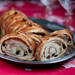 Después enrollamos formando un cilindro, cerramos los bordes y lo decoramos con recortes de la masa. Dejamos reposar el pan ya formado unos 20 minutos y después horneamos durante 30 minutos a 190ºC, luego lo pincelamos con huevo batido y volvemos a meter otros 20 minutos más hasta que veamos el exterior de un color dorado.