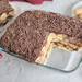 Una vez montado, tapa el molde y llévalo a la nevera durante al menos seis horas, aunque queda todavía mejor si lo dejas toda la noche. El reposo hace que las capas se asienten, los bizcochos se hidraten y el pavê quede firme, cremoso y fácil de cortar. Antes de servir y completamente opcional, puedes añadir virutas de chocolate.