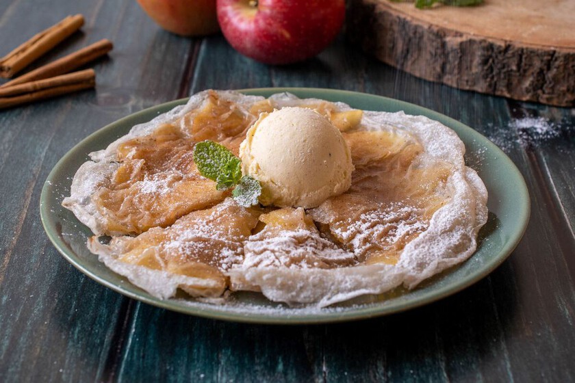 Servido tal cual, recién hecho, es una delicia ligera y crujiente, pero puedes lucirte más añadiendo azúcar glasé tamizado por encima, una bola de helado, nata montada o una salsa de caramelo o crema inglesa. Y la manzana del relleno se puede cambiar perfectamente por otra fruta de temporada, como peras o plátanos.